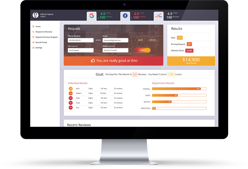 With AutoHype® dominating your online reputation has never been easier. Respond to Reviews at the click of a button. Track Staff Progress in Real-Time. Receive Instant Alerts. View Data and generate reports with ease.